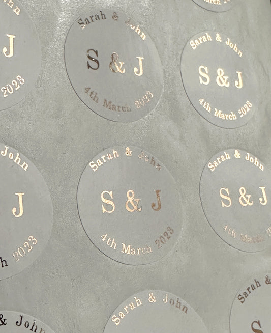 Foiled envelope stickers, personalised wedding stickers, envelope seals, foiled wedding stickers