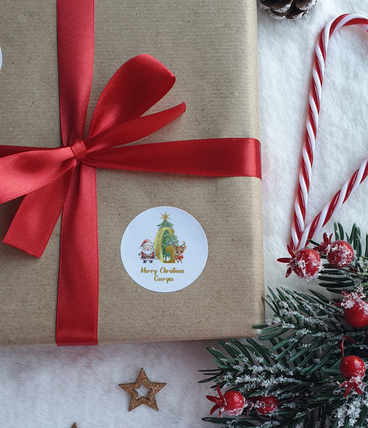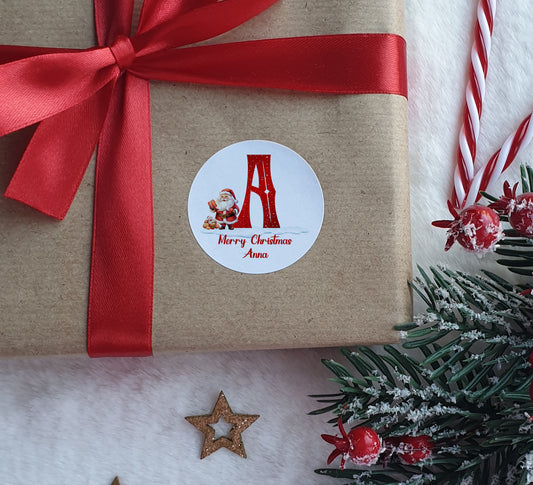 Personalised Christmas Matt or Gloss Sticker Labels, Christmas Stickers, Christmas Labels, Christmas Gift Labels, Santa Initial Stickers