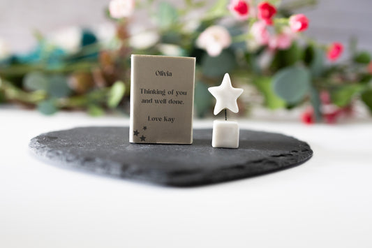 Personalised Porcelain Matchbox Ornament, Keepsake Gift, Star Ornament, custom gift, Friendship keepsake