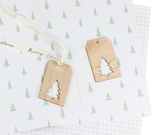 Christmas Gift Wrapping Paper, Wooden Tag Tree Wrapping Paper, Christmas Gift Wrap, Christmas Present Wrapping Paper
