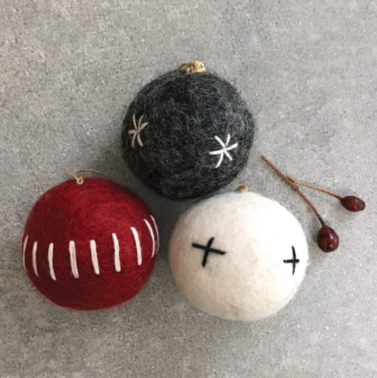 Felt Grey and White Christmas Bauble