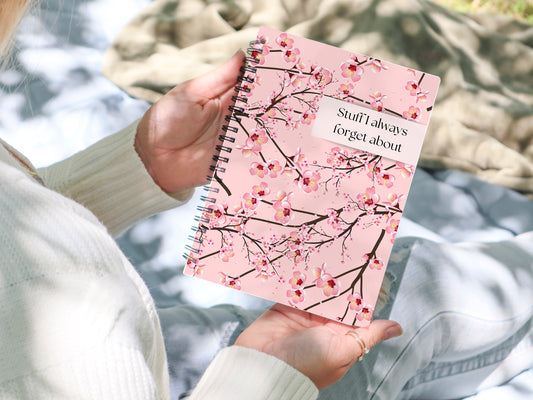 Personalised Notebook, Notepad Wire bound Soft backed, Cherry Blossom, Spiral Notebook, gifts for her, Gifts for him. A4 or A5