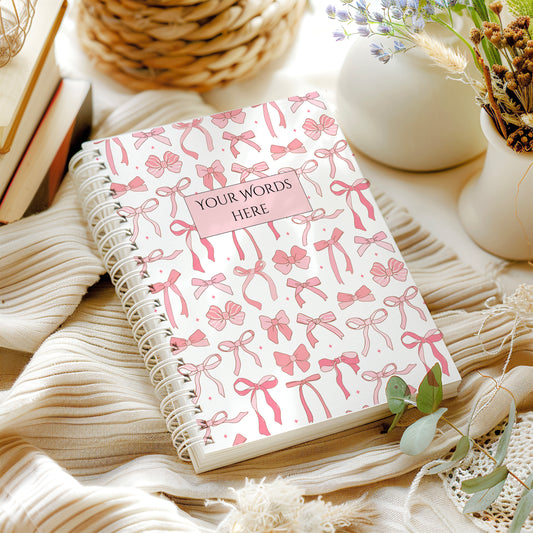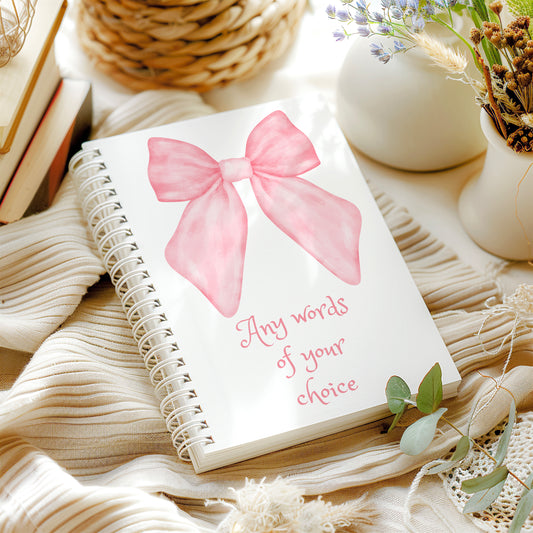 Personalised Notebook, Notepad Wire bound Soft backed, pink bow Spiral Notebook, gifts for her, Gifts for him. A4 or A5