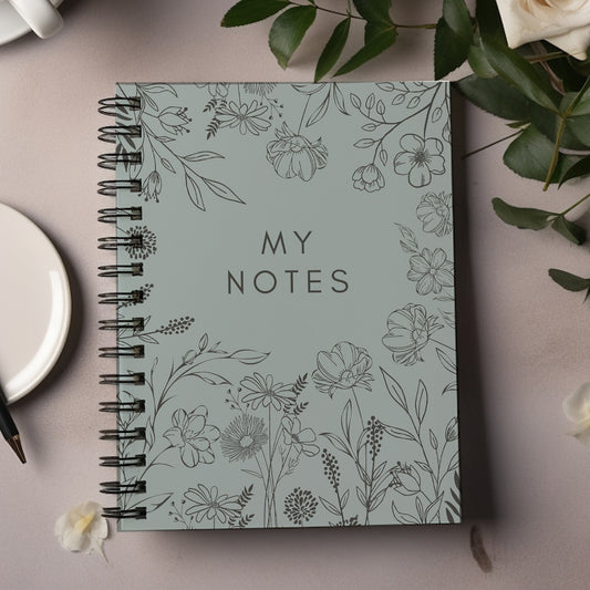 Personalised Notebook, Notepad Wire bound Soft backed, sage green Spiral Notebook, gifts for her, Gifts for him. A4 or A5