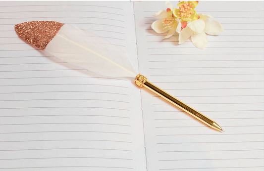 Feather tipped pen, Rose Gold Tipped, gift idea, Wedding Guest Book pen