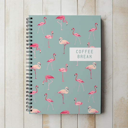 Pink Flamingo Spiral Notebook on Sage Background – A4 & A5 Sizes, Lined or Plain Paper