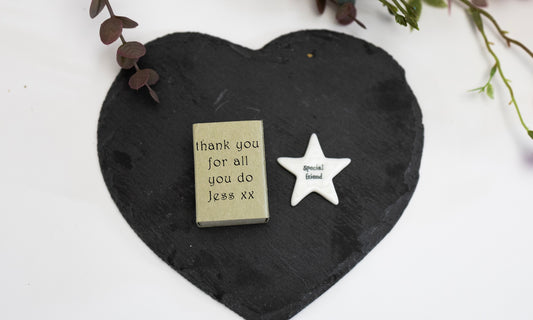 Personalised Porcelain Matchbox Affectionate Love You Keepsake Gift, special friend Boxed Gift, Keepsake Ornament, Porcelain Token Gift,