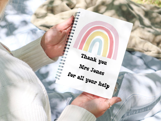 teachers Gift, Personalised Notebook, teachers gift Notepad Wire bound Soft backed, rainbow notebook, gifts for her, Gifts for him. A4 or A5