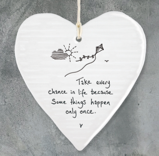 East Of India Porcelain Hanging Heart Take every chance Porcelain Gift
