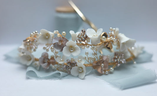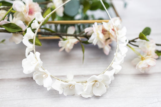 Wedding hair accessories, White Ceramic Flower headpiece, Bridal Tiara, Flower headband.