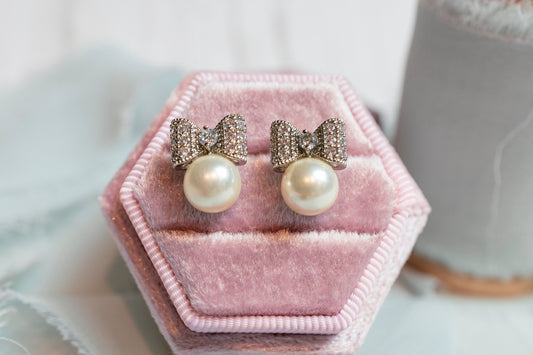 Pearl Bow Wedding Earrings