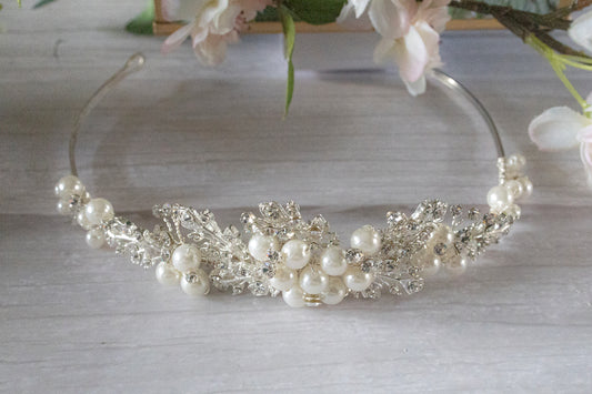 Silver Bridal Tiara, Wedding hair Accessories, Pearl Bridal Tiara, wedding hairpiece, wedding Tiara, hair accessories,