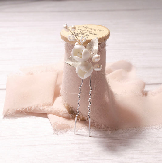 Bridal Hair pins, Wedding hair accessories, silver Ceramic hair accessories, hair pins