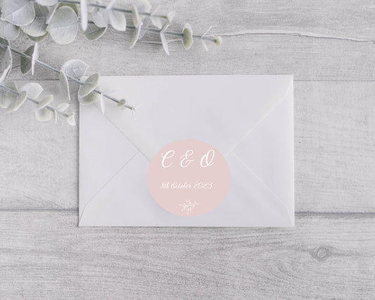Personalised blush wedding Stickers, Envelope Seals, Wedding Favours, Round Wedding Stickers