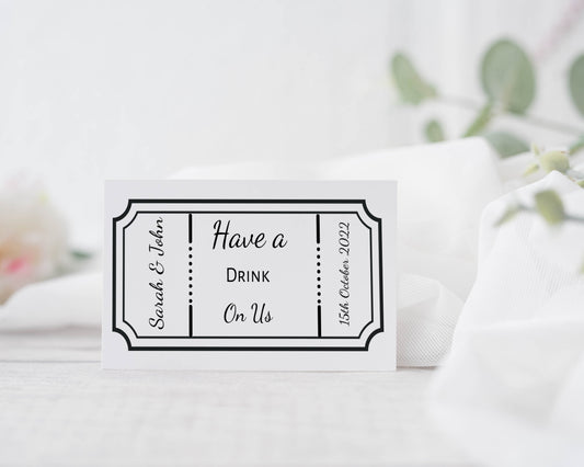 Personalised drinks Ticket, Wedding drinks Tokens, drinks vouchers, free drink Token, have a drink on us