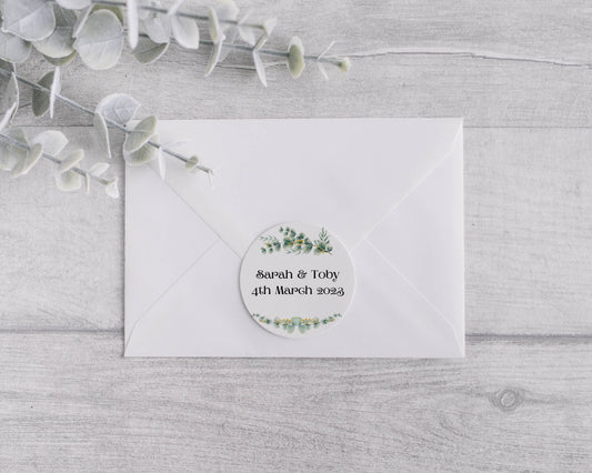Personalised Eucalyptus wedding Stickers, Envelope Seals, Wedding Favours, Round Wedding Sticker