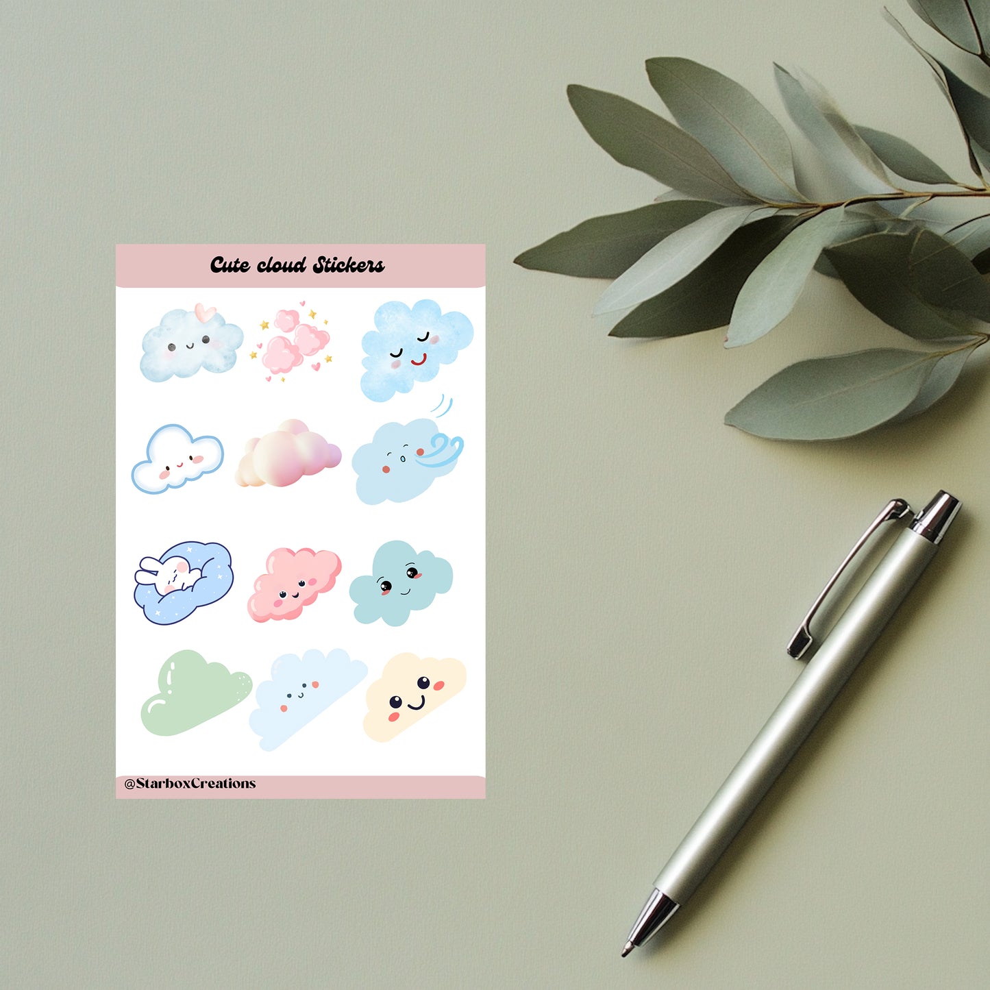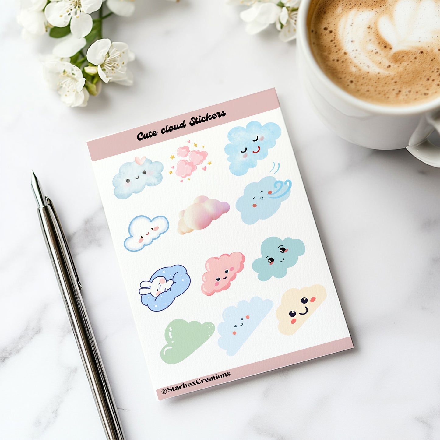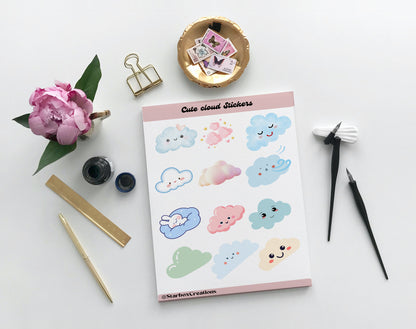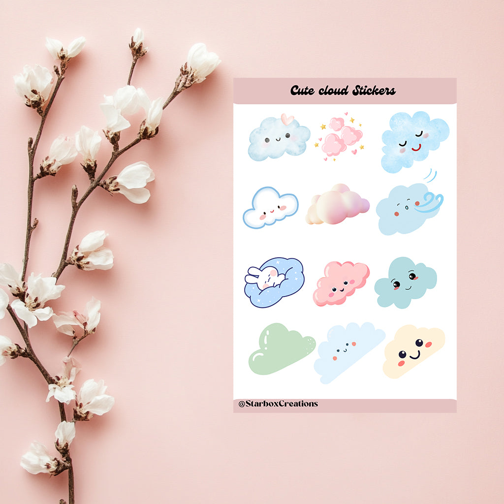 Cloud Stickers, Sticker Sheets, Planner Stickers , Bullet Journal Stickers , Journal Stickers , Scrapbook Stickers, weather stickers