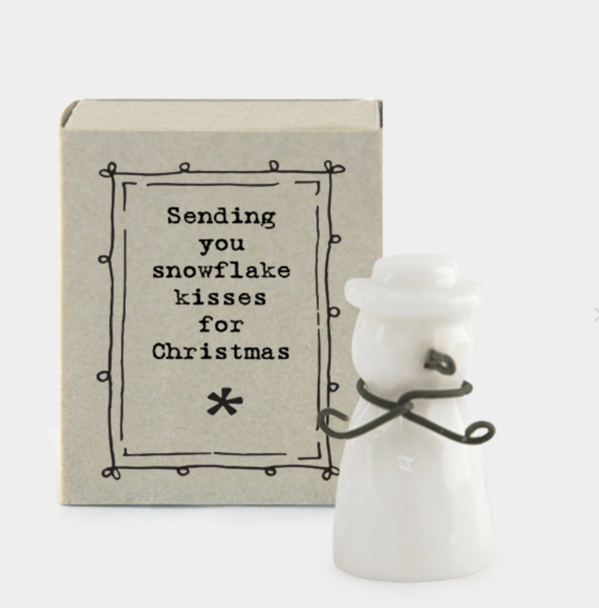 Presented in a kraft box with the heartfelt message "Sending you snowflake kisses for Christmas", this charming ceramic snowman makes the perfect little token for loved ones, stocking fillers, or festive shelf decor.
