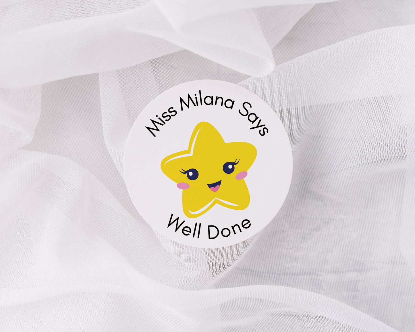 The stickers can be custom personalised with the teacher or teaching assistants name and you can also change the wording on the sticker if required. Just make sure to add the personalisation details in the box when checking out. The Stickers come in a choice of Matt paper or high gloss.